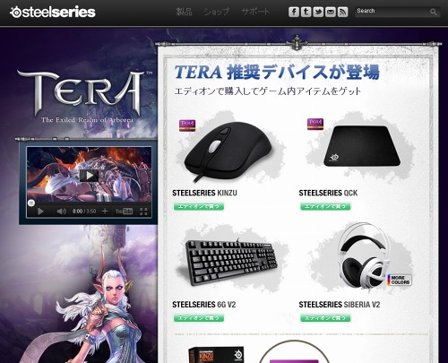 TERA RMT : The Exiled Realm of Arborea」の推奨周辺機器に、エディオンでのキャンペーンも
